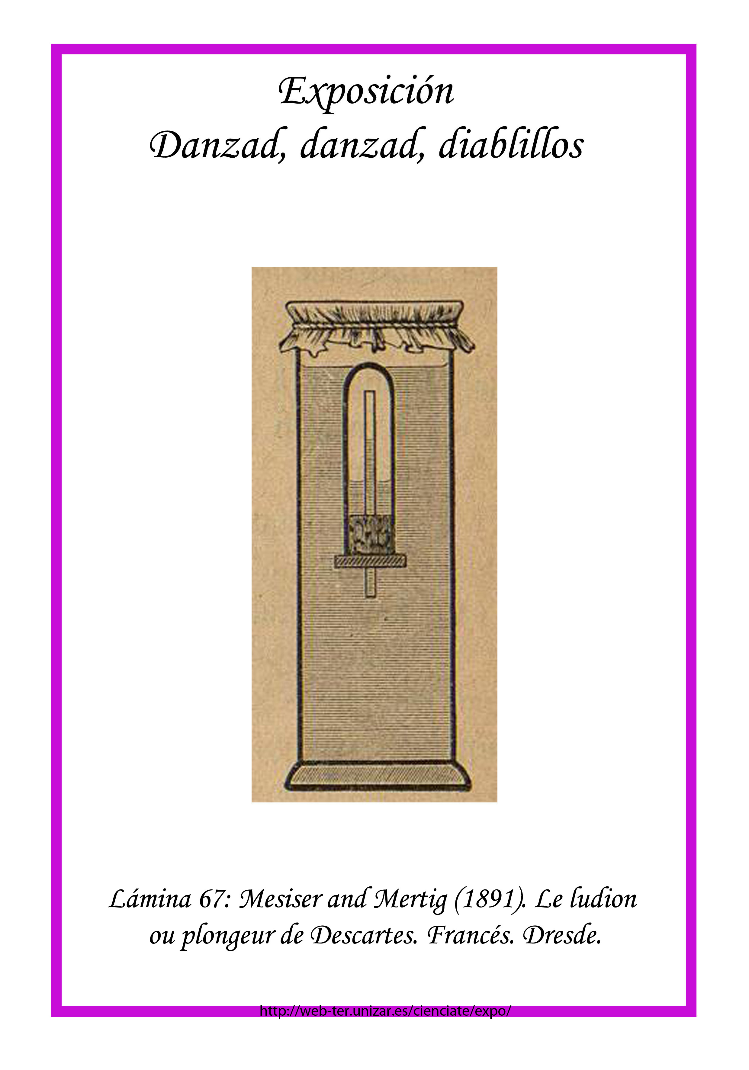 Lámina 67: Mesiser and Mertig (1891). Le ludion ou plongeur de Descartes. Francés. Dresde. - Pulse aquí para ver la lámina en su tamaño original.